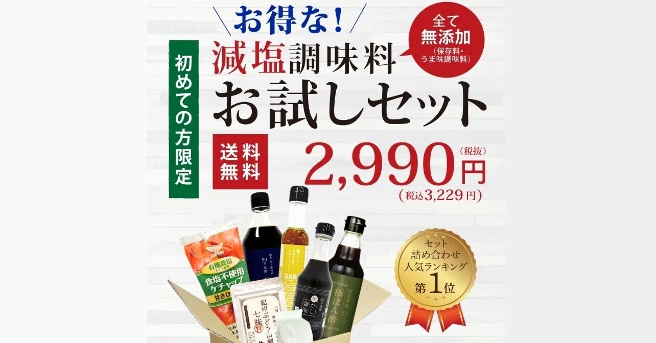 その心配、不要です。無塩ドットコムには初回限定セットがあります。
